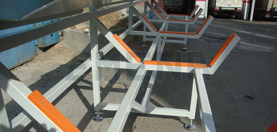 Devirme sehpaları üretilmekte olan boru ve profillerin uzunluk, genislik ve çapına göre tasarlanmaktadırlar. Kesilen profilin arka ucu devirme sehpasına geldiği zaman sistem pnomatik olarak asağıya doğru hareket eder ve profil devirme sehpasının haznesine düsmektedir. Devirme sehpaları 4 – 6 ve 12m olarak üretilmektedirler.. Çift yönlü olarak imal edilebilmektedirler Devirme sistemi çekici enkoderinden alınan yol mesafesine göre yapılmakta ve bu sayede değisik hat hızlarında tekrar ayar yapmaya gerek duyulmamaktadır.